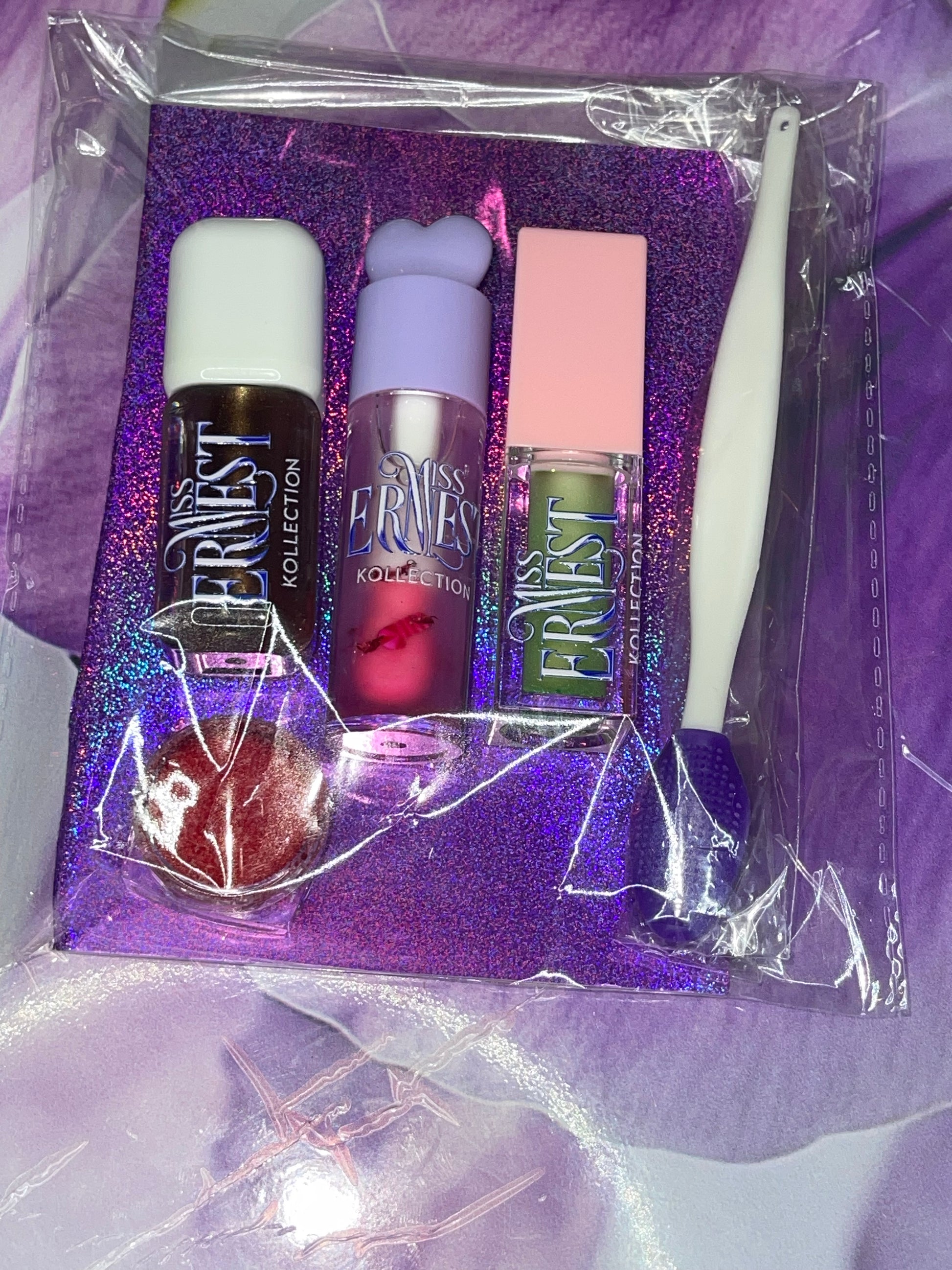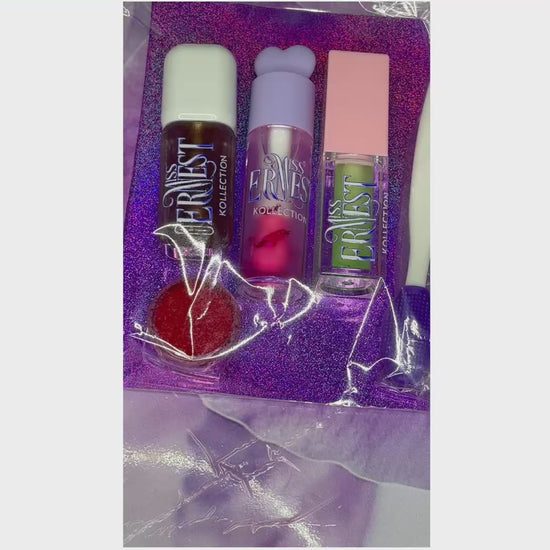 Ce kit est composé d'un gloss cocoa glow, un color changing lip oil, lip oil menthe et vanille, un gommage à lèvres fraise accompagné d'une petite brosse